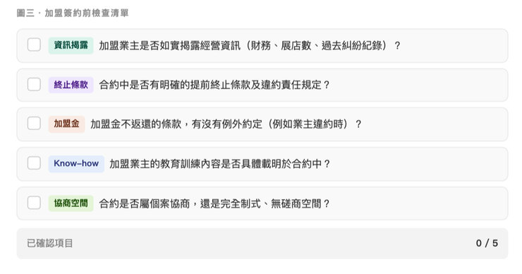 如果你正在考慮加盟,以下幾件事值得在簽約前認真確認: